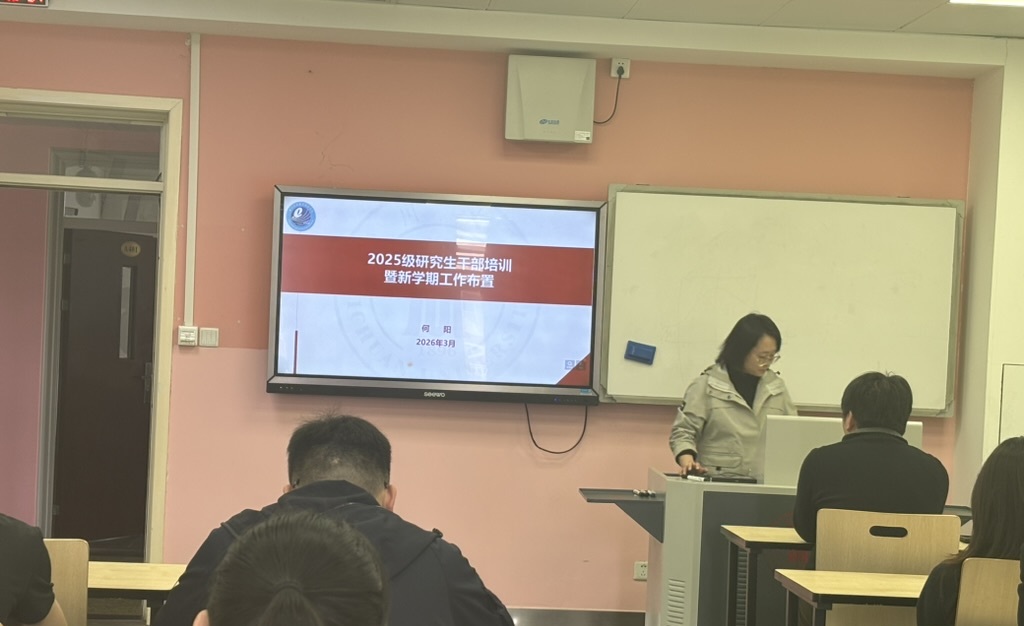 2026年3月26日下午两点半,电子信息学院在基础教学楼A座402教室顺利召开2025级研究生干部培训暨新学期工作布置会。本次会议由学院研究生辅导员何阳老师主讲,2025级硕博研究生干部参与。本次会议旨在提升研究生干部工作能力,明确新学期工作方向。