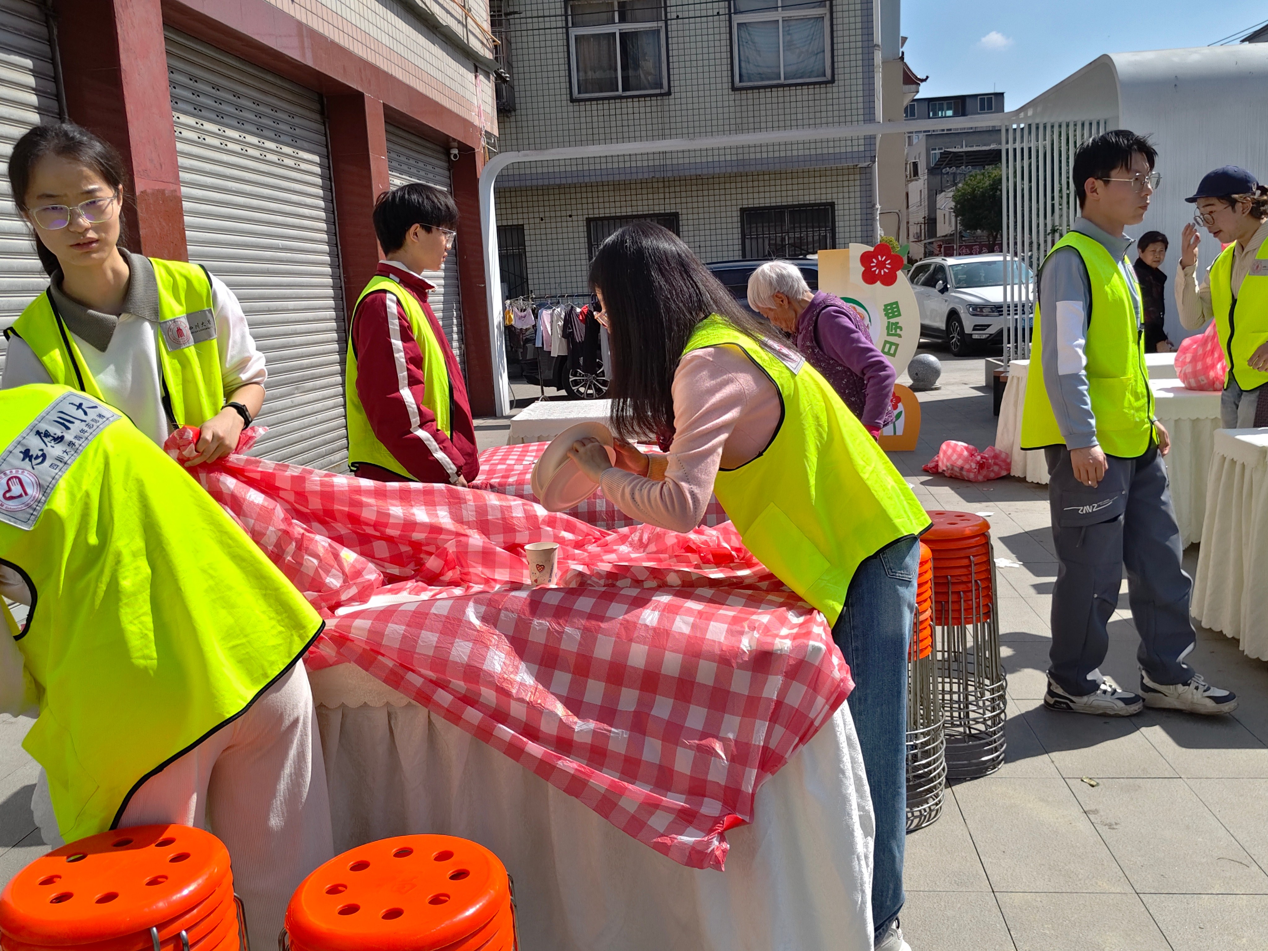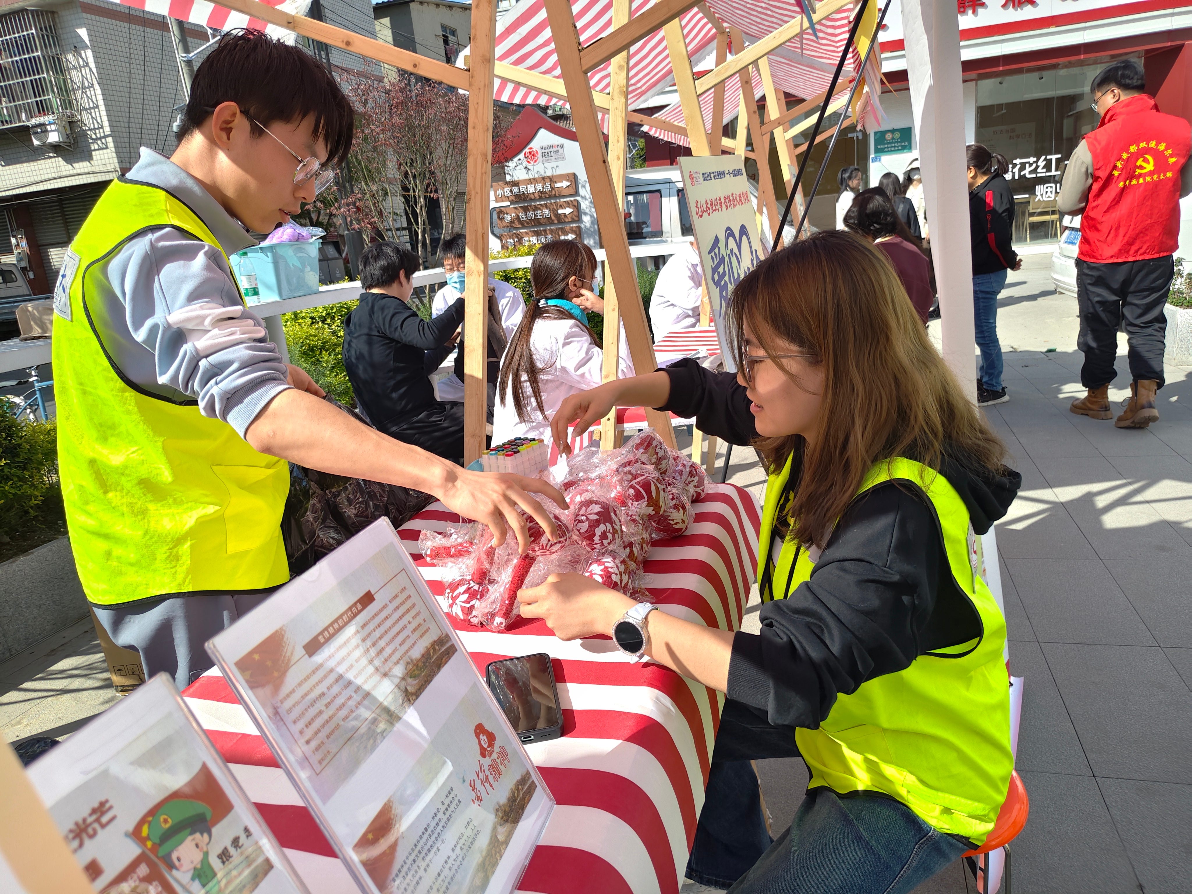 图为志愿者布置场景