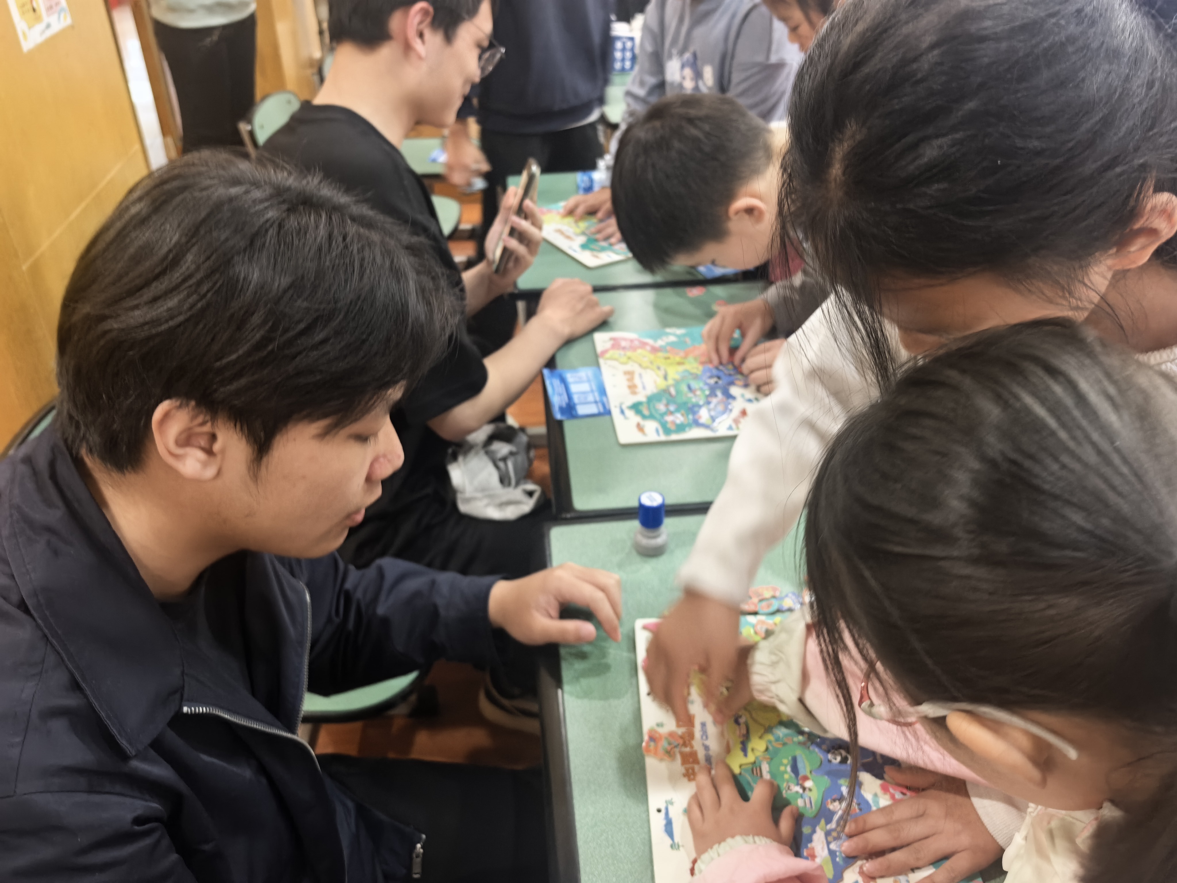 图为宣讲团成员、江姐班同学引导孩子们完成集章打卡任务