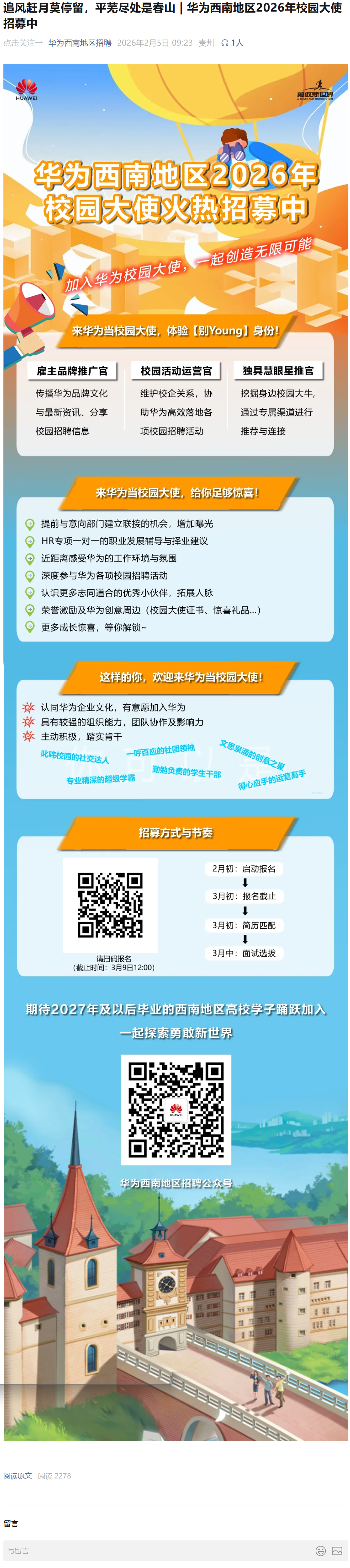华为西南地区2026年校园大使招募与3月19日望江AI实习生岗位交流会