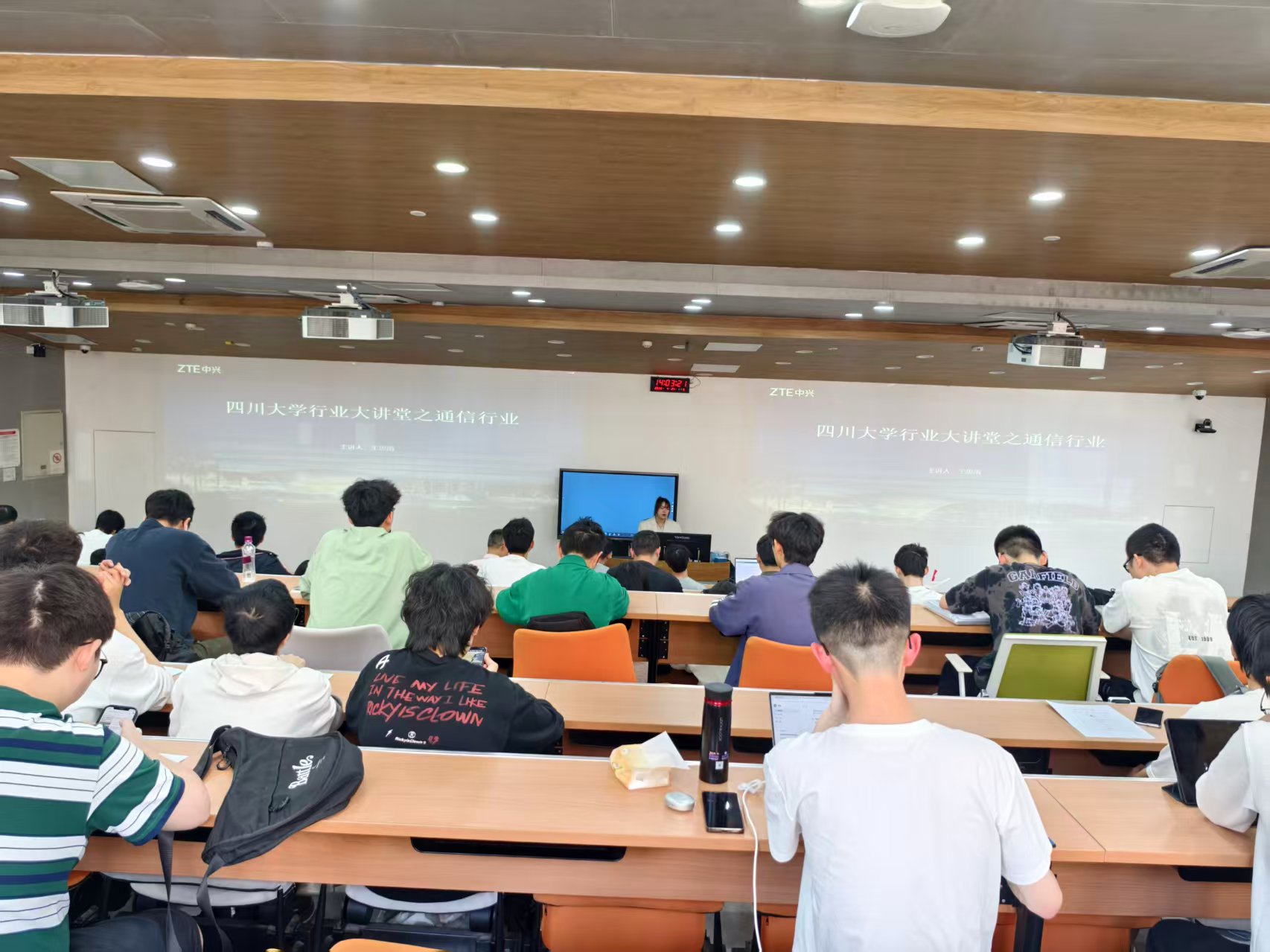 为深化校企合作,拓宽学生专业视野,了解通信技术前沿最新发展动态,2026年4月24日下午,行业大讲堂之通信行业在望江校区基教C座C101成功举办。本次活动由四川大学就业指导中心与电子信息学院联合主办,我们特别邀请中兴通讯经理王思雨担任主讲嘉宾,通过专题报告与互动问答相结合的形式,为学生提供了了解前沿科技、感受产业创新的宝贵机会。