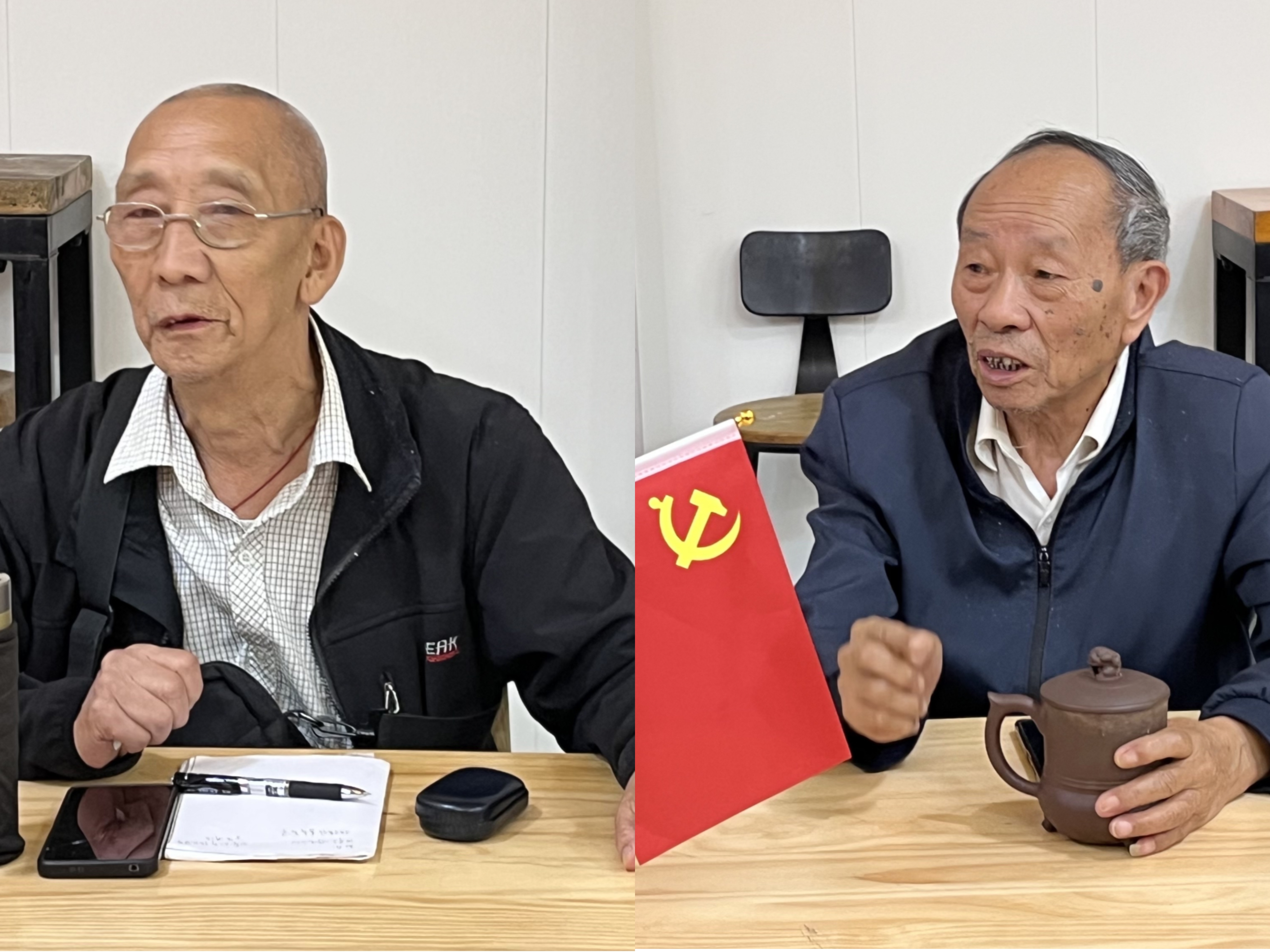 图为贾永福书记(图左)和周本荣研究员(图右)分享经历