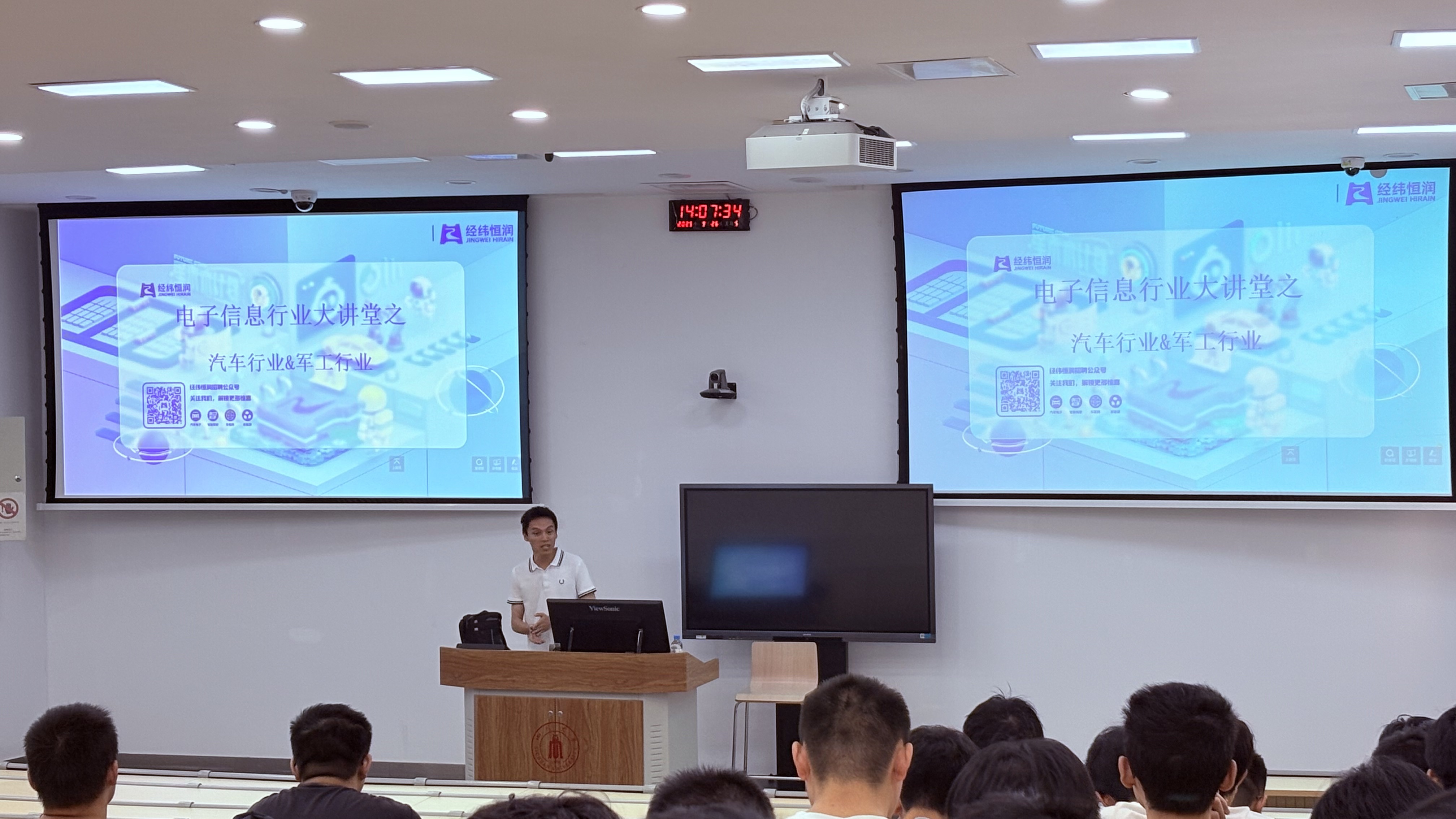 为拓宽学生行业视野,增强专业自信,强化保卫国家意识,2025年9月26日下午,电子信息学院行业大讲堂--汽车和航空,于望江校区基础教学楼C座成功举办。本次活动由就业专职谢老师组织,特邀经纬恒润的张总监担任主讲嘉宾,讲座通过专题报告与互动问答相结合的形式,为学生搭建了与行业专家对话的平台。
