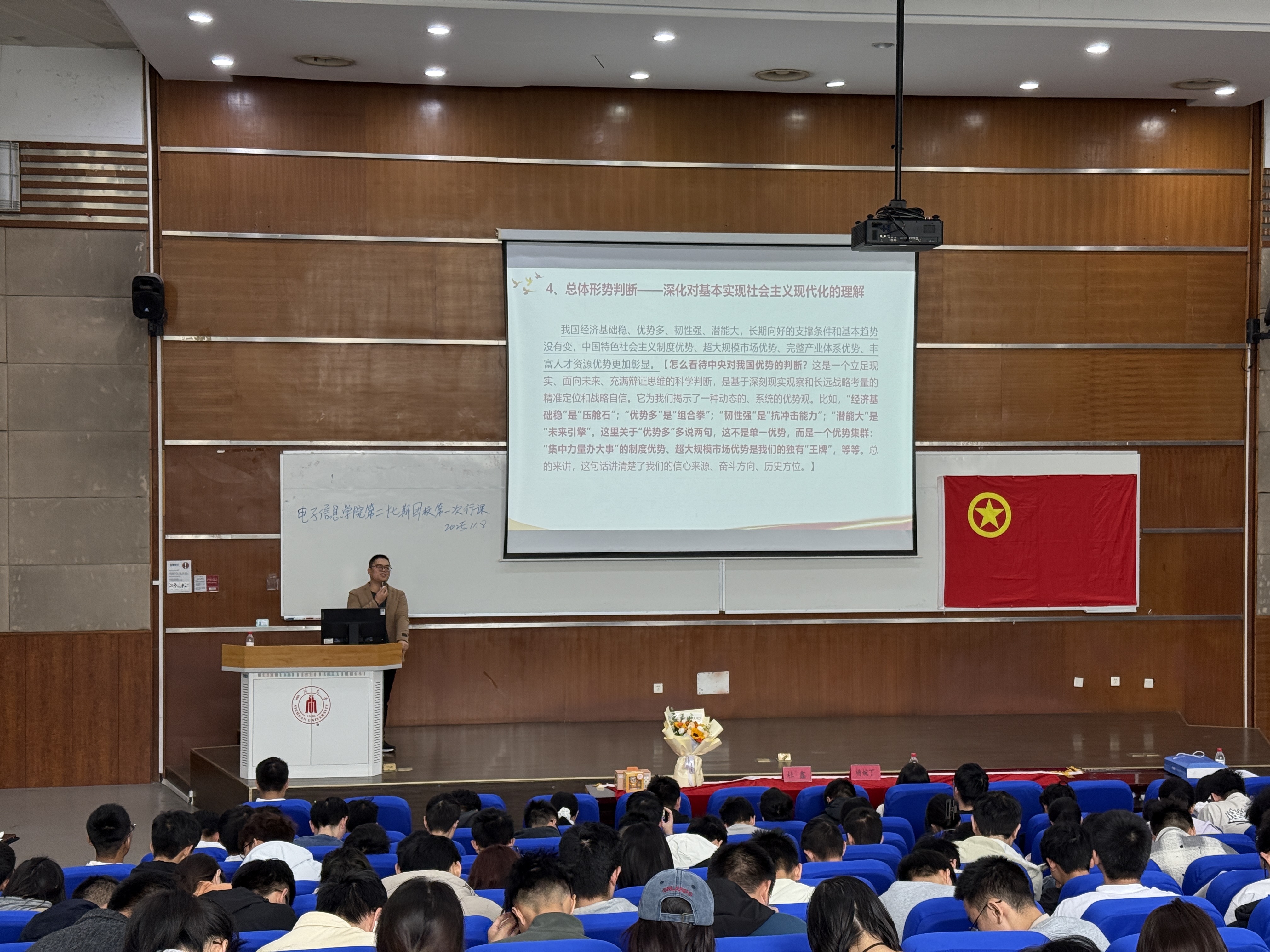 11月8日上午,四川大学电子信息学院第27期团校第一次行课在四川大学江安校区综合楼C407顺利举行。以“学习贯彻党的二十届四中全会精神,认识青年在现代化建设中的历史使命”为主题,旨在帮助各团员及入团积极分子提高思想觉悟,学习先进理论,领悟青年使命。