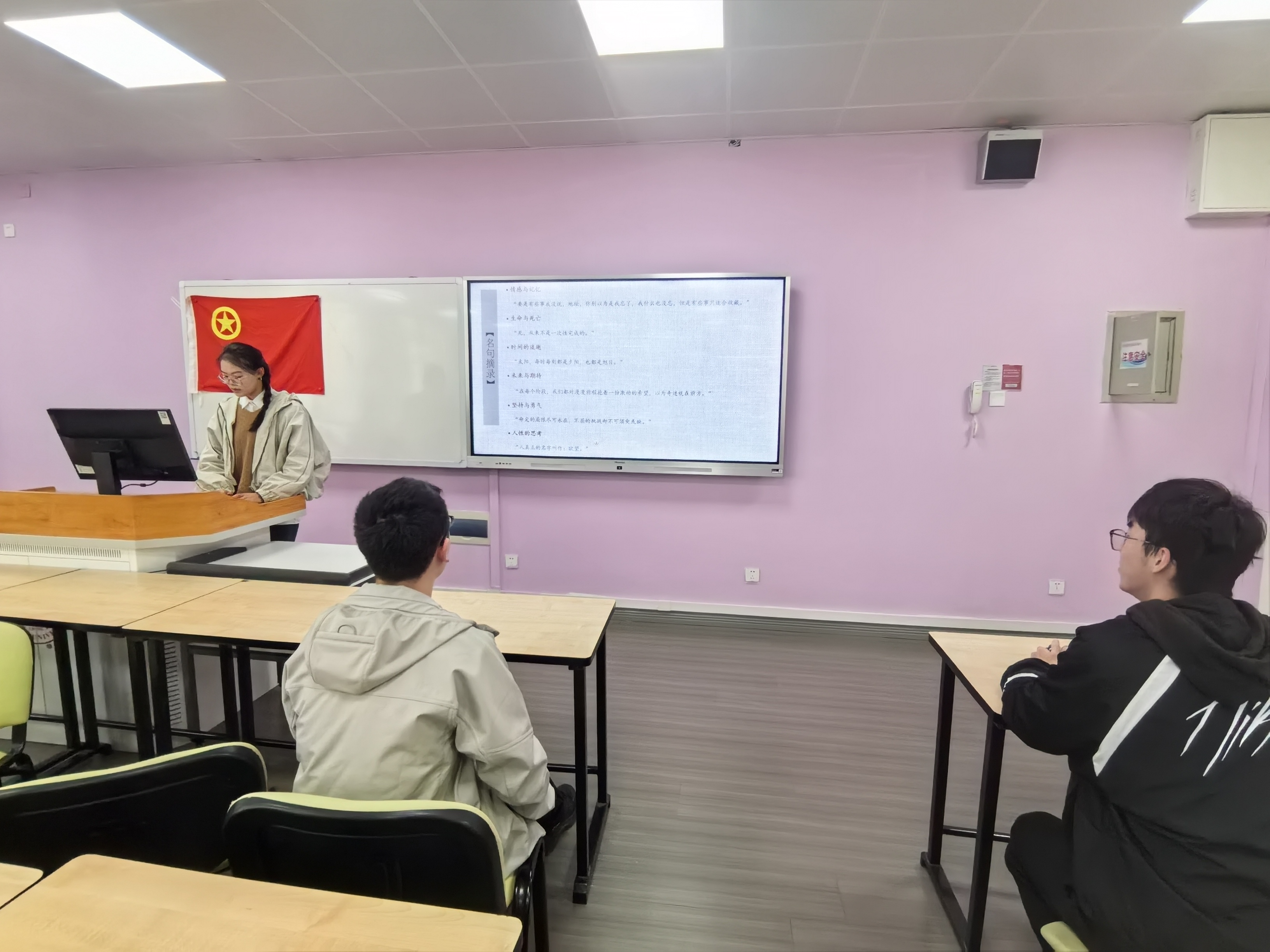 活动在激昂的团歌声中拉开帷幕,嘹亮的歌声凝聚起团员们的青春向心力。随后,4班团支部书记向诗艺介绍《我与地坛》的创作背景与核心内涵,让团员们深刻体会作家直面苦难的生命历程。
