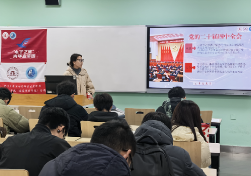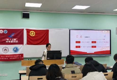 12月8日上午,四川大学电子信息学院2025级1班团支部“立报国强国大志向 做挺膺担当奋斗者”主题团日活动在江安校区一教C座C106顺利举行。本次活动由2025级1班团支部书记韩欣怡主持,并邀请四川大学百川青年学生宣讲团电子分团的廖晨曦、王伯澍到场,为同学们作专题讲解。