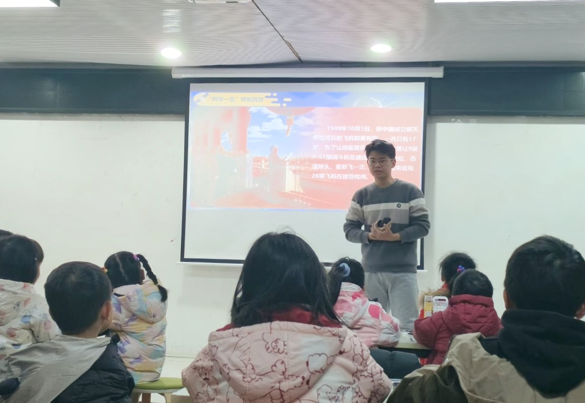 在《学两弹一星精神,做新时代追梦人》宣讲中,江姐班团支书莫斌斌将保密知识融入讲解,通过带领孩子们沉浸式体验我国第一颗原子弹研发历程、讲述科研工作者艰苦奋斗、无私奉献的故事,深刻阐释“两弹一星”精神内核,引导孩子们体会和平时代的来之不易,树立自觉维护国家利益的责任担当。