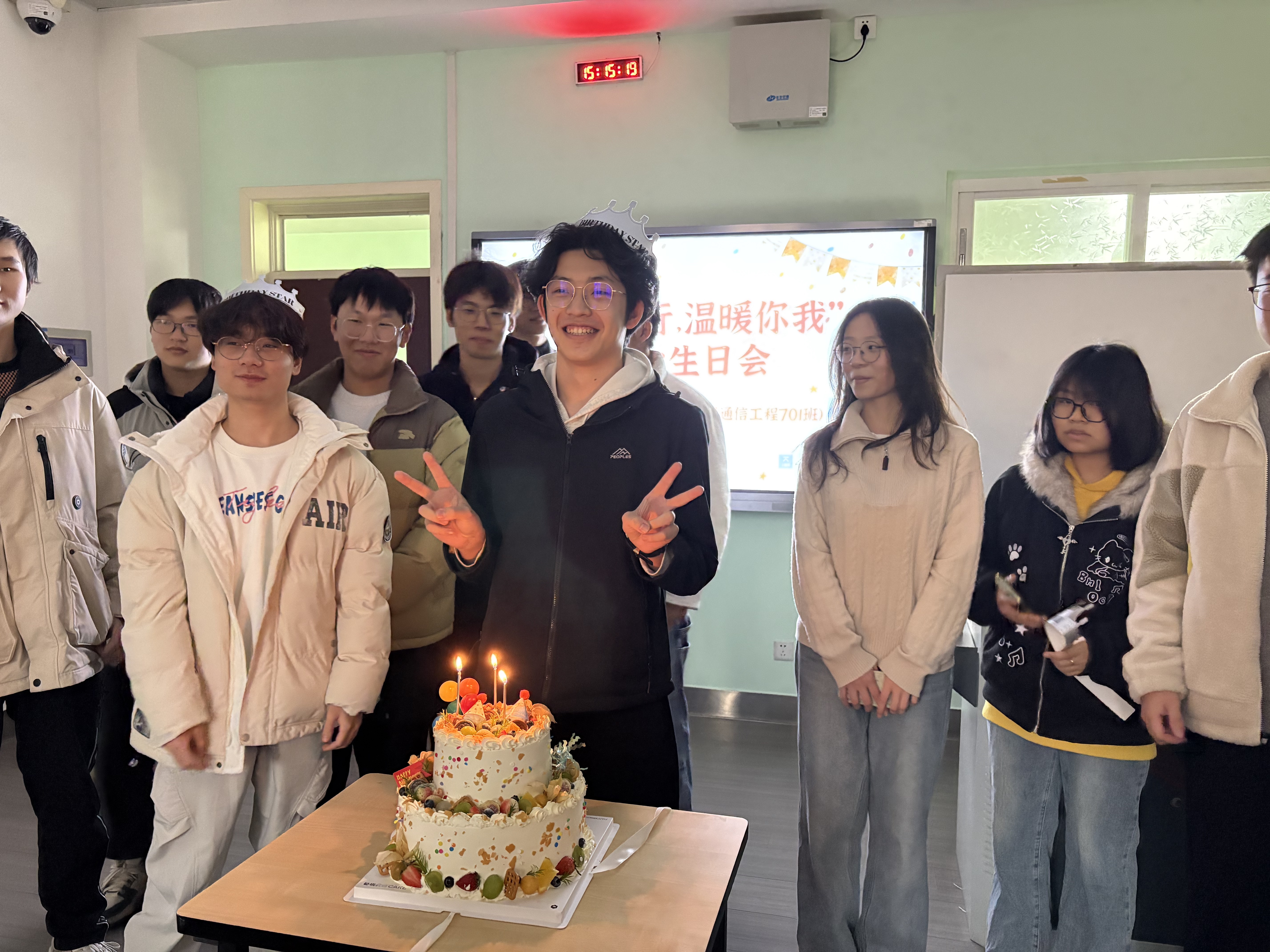 冬至将至,寒意渐浓,校园中却洋溢着别样的温暖。为凝聚班级合力,营造积极向上的集体氛围,12月19日下午,电子信息学院江姐班在望江校区基础教学楼A319举办“E路同行,温暖你我”集体生日会,为生日在11月、12月的6位同学共同庆生。班主任马守智老师与班级全体同学齐聚一堂,共度温馨时光。