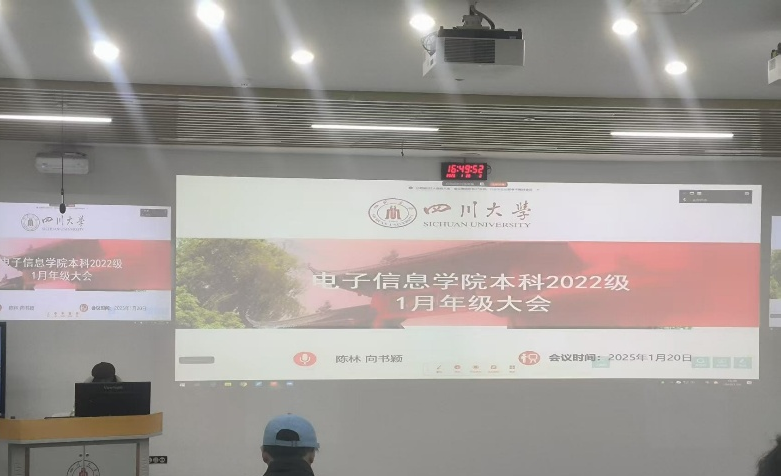为帮助学生明晰考研复试备考方向,搭建师生沟通桥梁,同时切实做好寒假期间的注意事项提醒和安全保障工作,帮助学生度过平安祥和的假期,四川大学电子信息学院2022级本科生1月年级大会于2026年1月20日下午17时在望江校区基础教学楼C201成功开展。