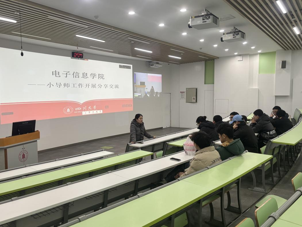 为扎实推进2026届毕业生考研复试指导工作,助力学子科学备考、从容应考,1月20日下午,四川大学电子信息学院在望江校区召开考研复试小导师见面会。会议由学院辅导员陈林老师与兼职辅导员向书颖老师共同主持,学院选拔出的25名小导师参会。会议围绕复试帮扶工作的整体部署、具体实施与协同机制进行了深入研讨与动员。