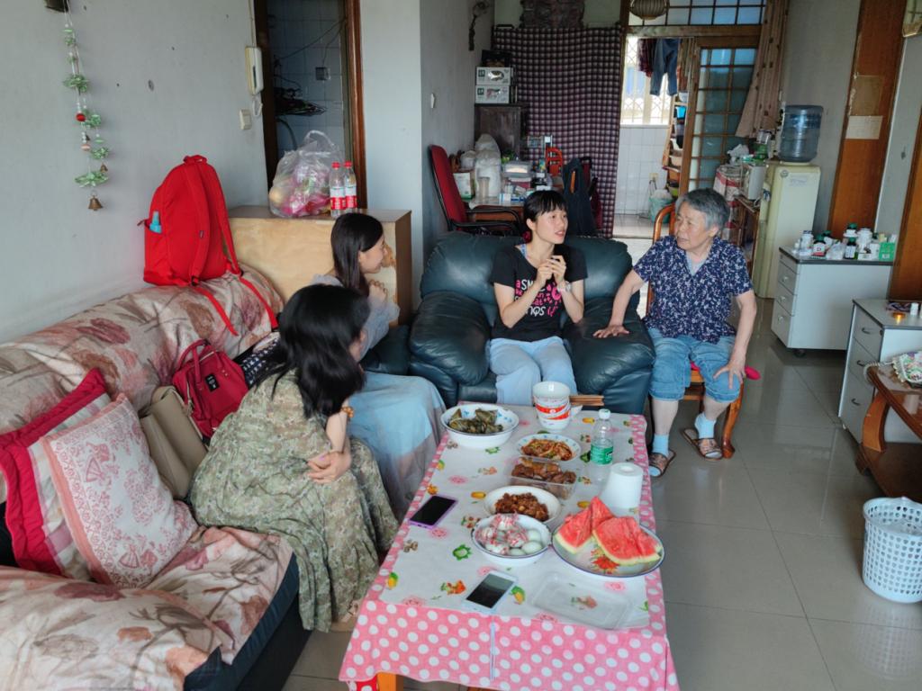 冯声秀老师虽然已经年逾80,但是思维敏捷,听力和视力都不错,“平常在家会看看电视、听听新闻”,可千万别小看奶奶脑子里的剧库:什么麻雀、伪装者、酒店风云、探案先锋、综艺,永在时代潮流前线。由于腿脚不便,加上又住六楼,所以冯老师平常很少出门,志愿者们留下了联系方式,希望冯老师在以后有需要跑腿的地方能够及时联系到我们。“你们研究生我知道,我看新闻的,学习很辛苦,不用经常来看我”,看着跑上跑下的小辈儿们冯老师强调了好多遍,让我们看见了老人对青年不自觉的疼爱与关怀。