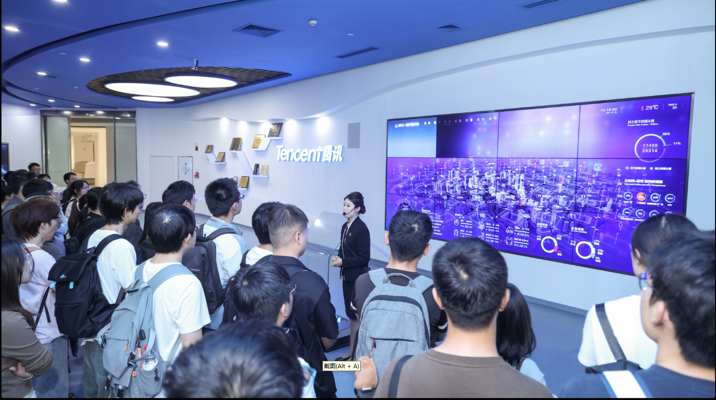 随后,在讲解员的引导下,师生参观腾讯展厅,深入了解数字人、云游戏、智慧文旅等标杆案例,近距离感受科技与人文融合的创新成果。