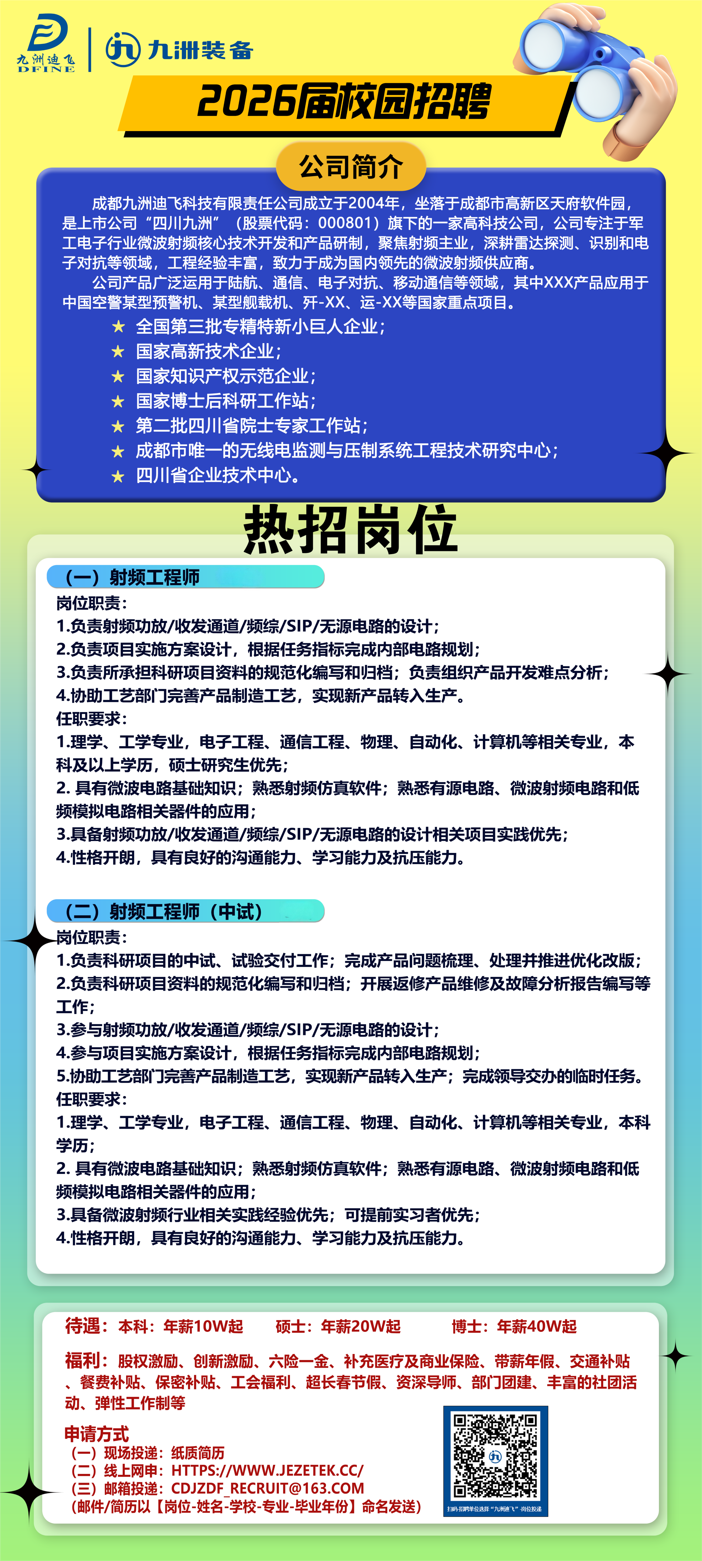 【公司简介】成都九洲迪飞科技有限责任公司成立于2004年,坐落于成都市高新区天府软件园,是上市公司“四川九洲”(股票代码:000801)旗下的一家高科技公司,