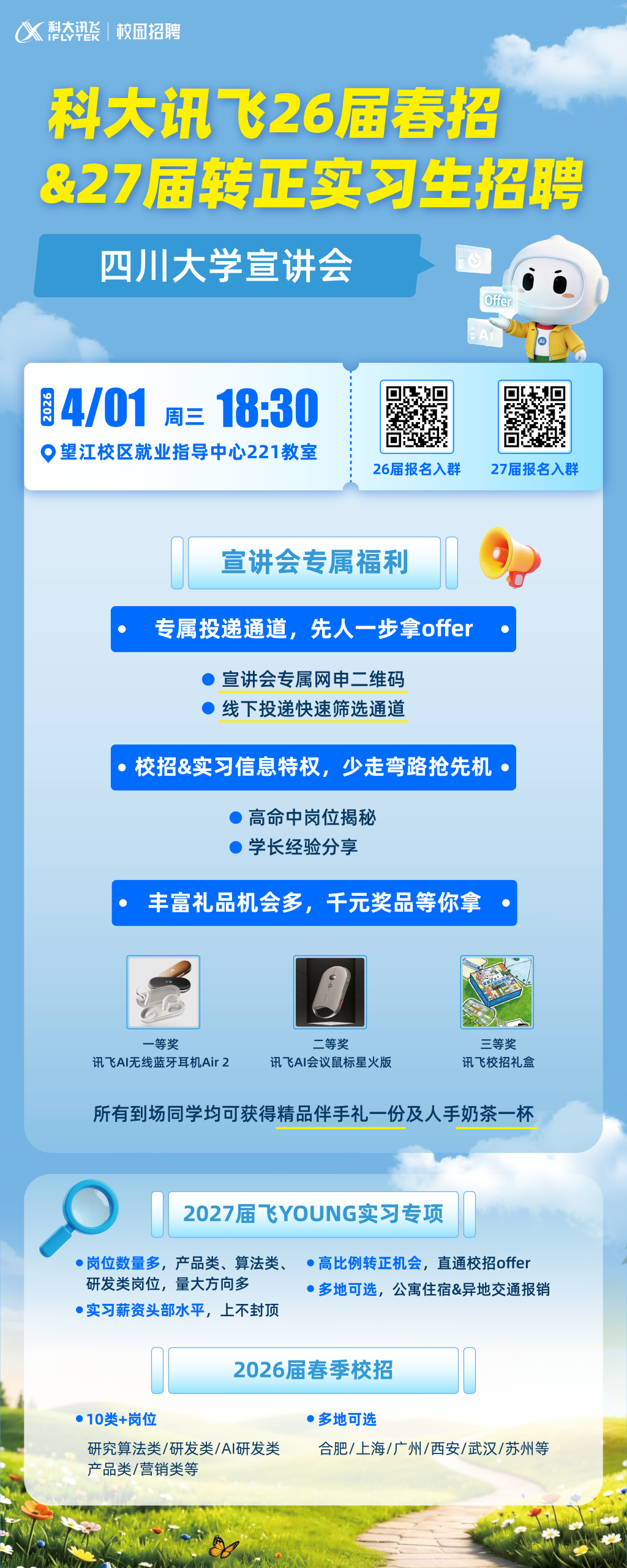 科大讯飞26届春招&27届转正实习宣讲会-川大场就在本周三!!!